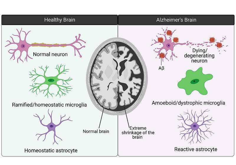 What happens to glia cells in Alzheimer's disease and traumatic brain injury?